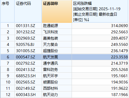 令人关注的是,尽管财务造假的余波尚未平息,公司业绩也持续承压,但航天动力的股价在近期却迎来飙升。数据显示,航天动力2025年12月31日的收盘价格较2025年11月20日的收盘价格累计涨幅达200.80%;另外,截至2026年1月8日收盘,航天动力自2025年11月19日起累计上涨223.35%,在5470家上市公司中位列第6名。