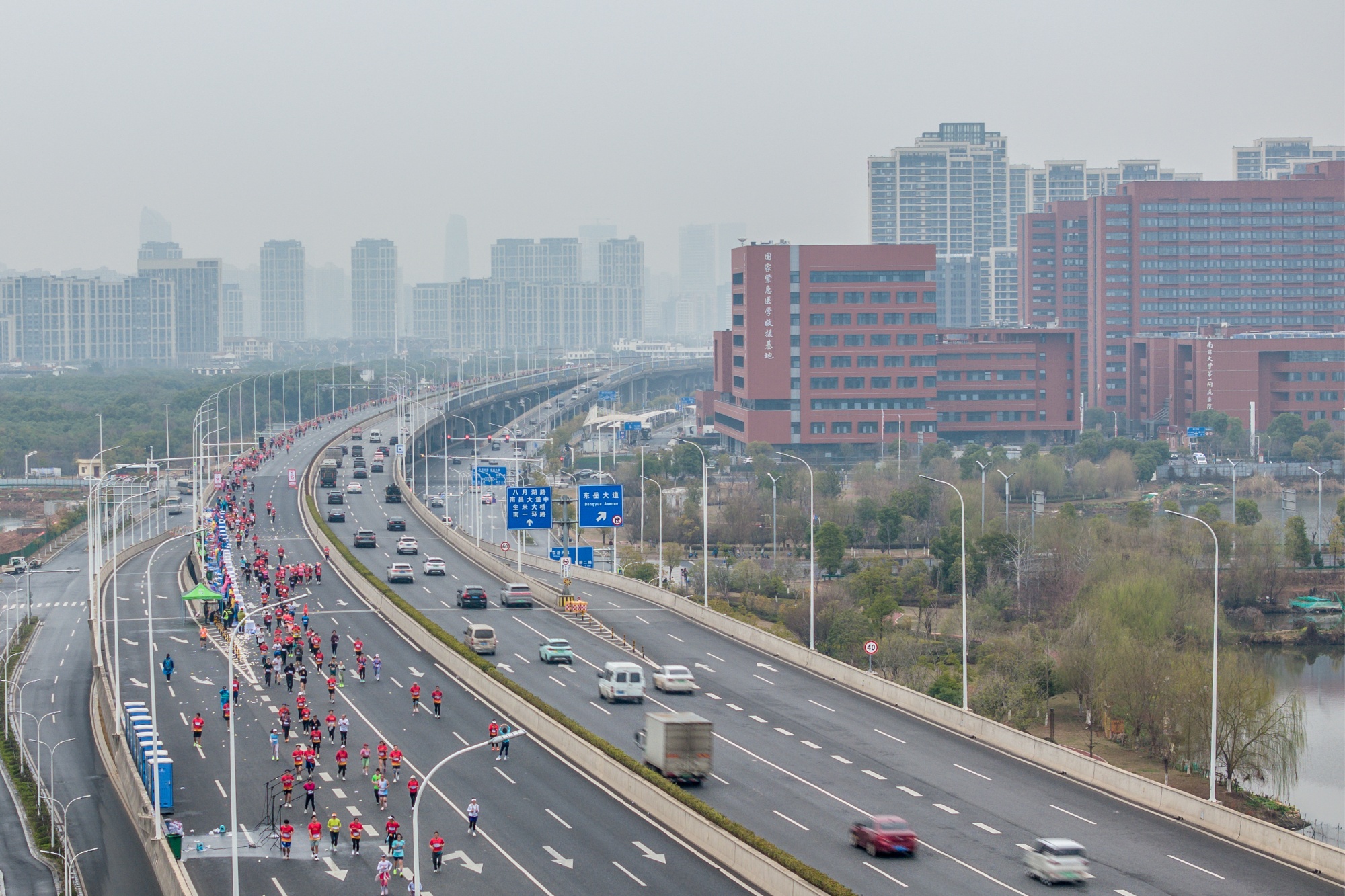 马拉松的魅力,不只是冲过终点的荣耀,更是沿途的风景与故事。“象湖半马”紧扣“千年豫章郡,百强南昌县”这一城市IP,精心规划路线,从复兴大道出发,至昌南文化中心结束,沿途串联起南昌县多处文化地标建筑。在复兴大桥,江天一色的壮阔与都市天际线的现代韵律交相辉映;在赣江昌南外滩公园,赣江水波的温柔轻抚与绿意盎然的自然风光和谐共生;在昌南文化中心,厚重的历史文化与独特城市品位相映成趣……“特意带着孩子从外地赶过来。这次象湖半马,不仅是一次体育的竞技,更是一场文化的熏陶,让孩子受益匪浅。”参赛者陈鑫表示。