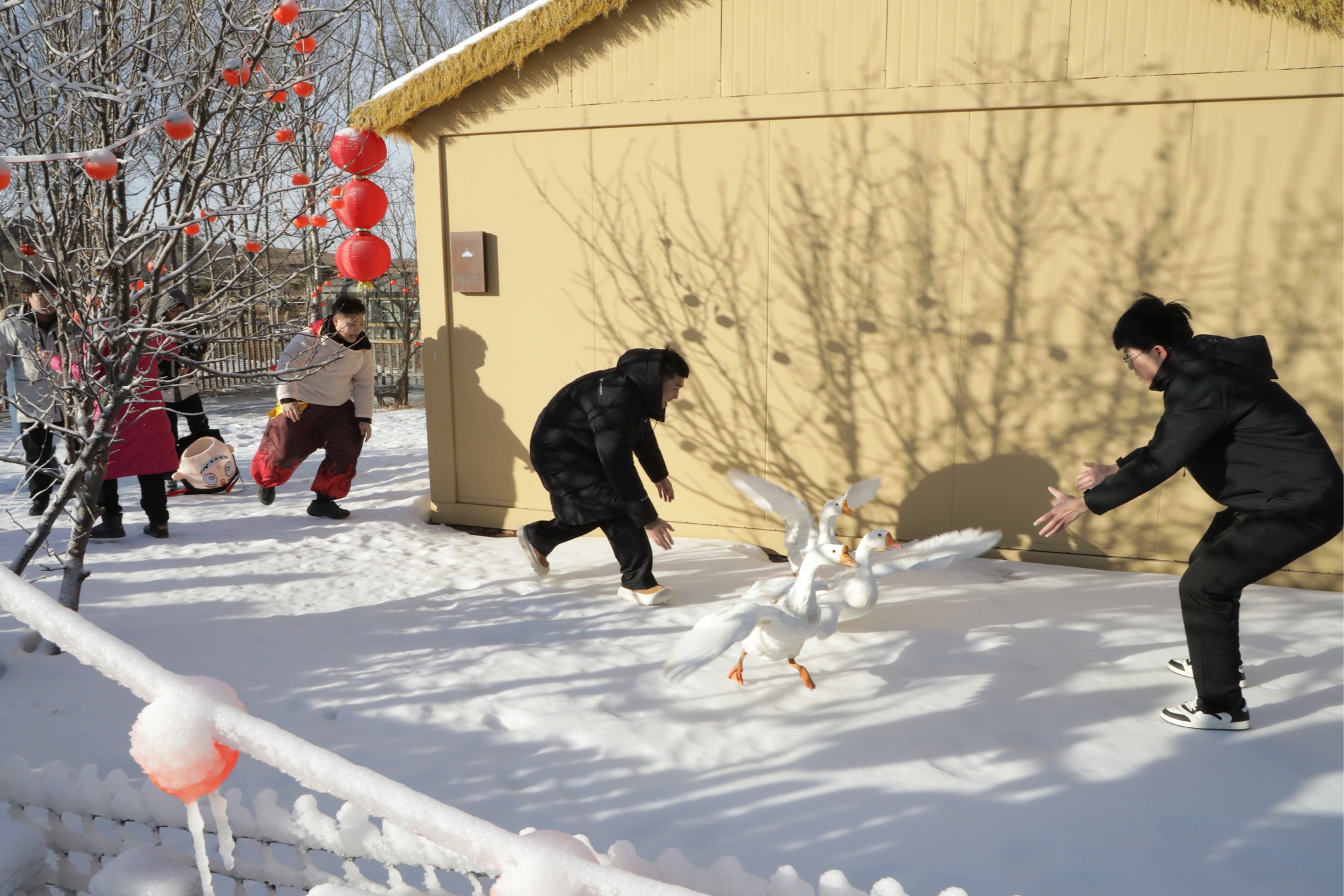 来自抚顺的游客孙薇说:“景区打造了特色民宿场景和嬉雪游乐专区,可以说集冰雪娱乐、皇家民俗体验、农家特色美食于一体。今天领孩子尝到了‘药膳铁锅炖’,乘雪圈、打冰嘎、抓大鹅、寻宝活动也挺有趣的,工作人员还在现场亲自教学,大家都欢声笑语不断。过年回乡,欢迎去‘东北雪庄’!”