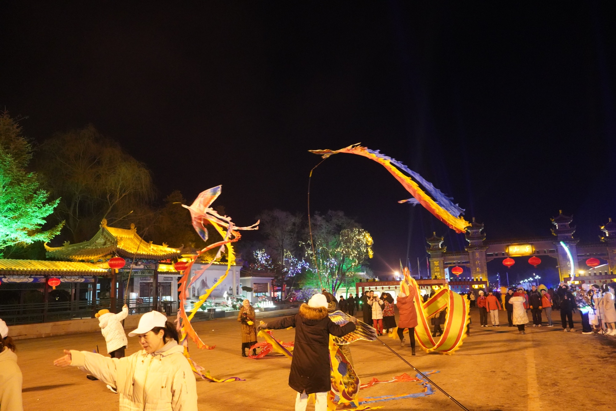 “5、4、3、2、1!”零点时分,位于灵岩寺景区的新年钟声敲响,2025年在大家的欢呼声中到来,人们在新年的钟声里吃福包,放飞承载着新年愿望的气球,千山跨年夜活动达到最高潮。