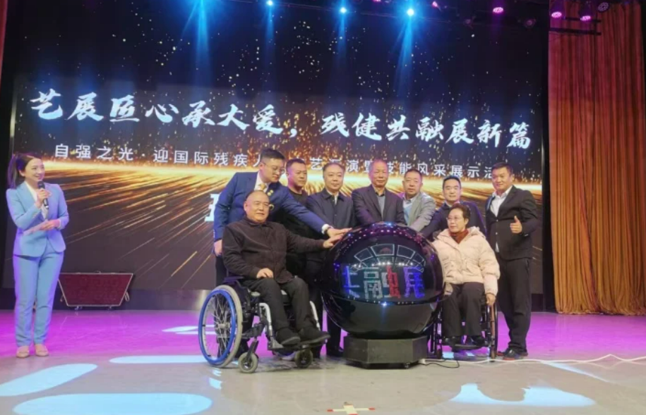 技能风采展示环节聚焦残疾人的学习成果。全国自强模范、辽宁省肢残人协会副主席张启东现场挥毫,左手书写“艺展匠心承大爱,残健共融展新篇”,苍劲有力的笔墨不仅展现了深厚的艺术功底,更彰显着生命的韧性与力量;特色技能培训成果展示中,肢残人学员的手工编织、非遗剪纸、国画等作品琳琅满目,学员代表分享了从零基础入门到技艺精湛的蜕变历程,曾经的迷茫无助在技能学习中化为自信从容,他们用双手创造美好生活的经历,赢得现场观众阵阵掌声。同步上演的葫芦丝、萨克斯独奏等节目,为技能展示增添了浓厚的艺术氛围,更衬托出肢残人群体多元的才华与魅力。