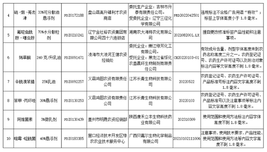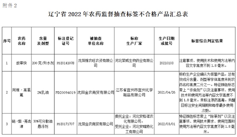 辽宁对违法经营行为依法进行严厉查处,并对违法产品进货源头开展认真核实调查,对情节严重的违法行为,依法吊销农药经营许可证,涉嫌犯罪的依法移交公安机关。同时,辽宁提出在2023年农药市场检查工作中,各地要将存在违法生产经营行为的企业及产品作为检查重点,开展重点抽查。