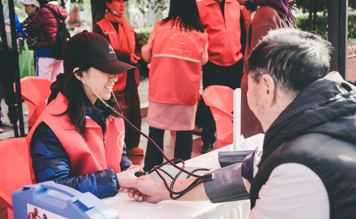 舞台上,各街道精心编排的文艺节目轮番上演,贴近老年喜好的表演赢得阵阵掌声。“既能免费检查身体,又能看节目,这‘大集’太贴心!”刚体验完服务的王大爷笑着说。党员志愿者们穿梭其间,搀扶行动不便的老人,主动收集服务意见,红马甲与“钢城义警”的蓝袖标相映,成为现场最亮眼的风景。