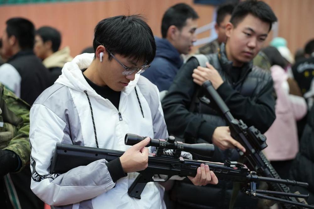 学生体验射击游戏(沈阳理工大学供图)
