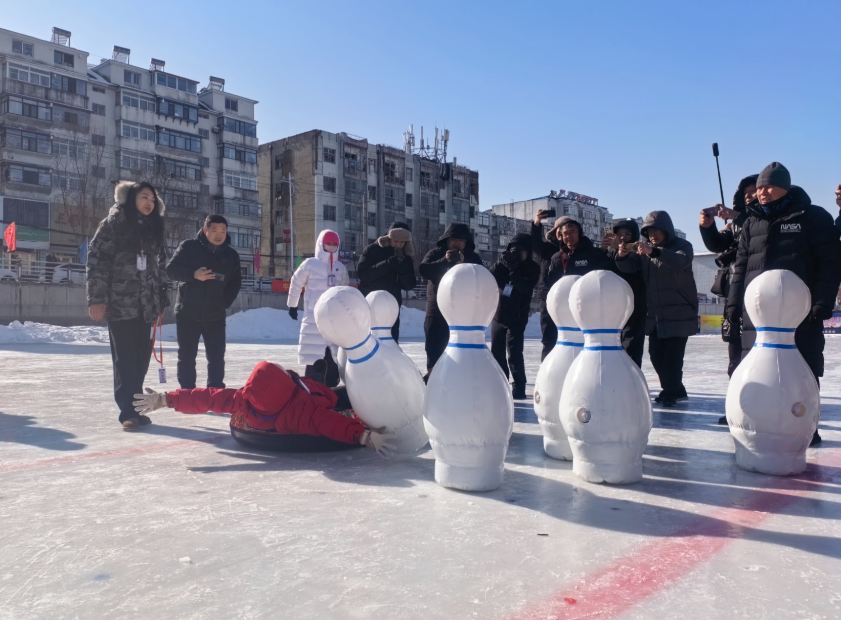 1月30日,2026年抚顺新宾满族自治县冰雪趣味运动会在新宾镇众鑫冰场举办,冰上人体保龄球项目激发了参赛者的热情。