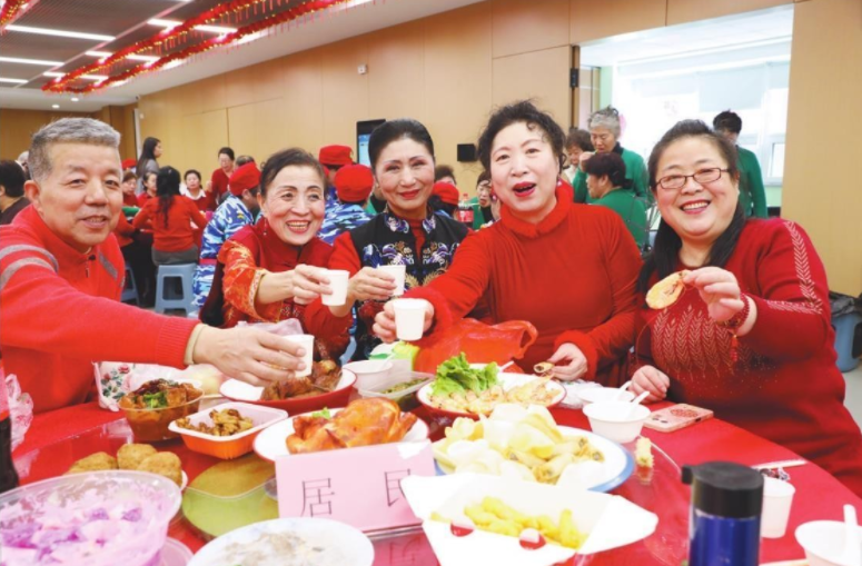 长安社区的新春百家宴源于2023年起的老旧小区改造,废弃多年的锅炉房变成了3000平方米的社区党群服务中心,居民们自发提议用百家宴庆祝小区“新生”。每户居民从“小家”拿出一道私房菜,在社区“大家庭”里品尝百家风味,共叙邻里情。