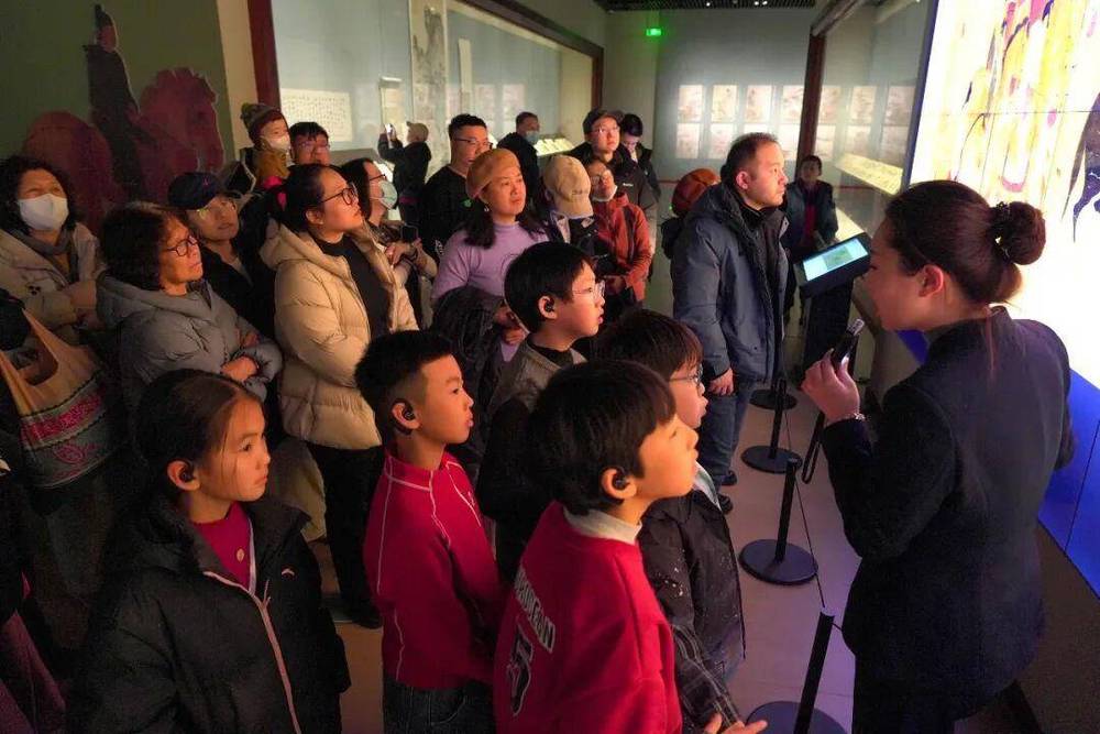 在馆内多功能厅,儿童剧场场爆满,帮助观众开启穿越时空的辽博国宝奇遇记;在“诗画中国”展厅和一楼大厅,观众可以体验传统投壶与趣味“赛马”桌游;在“唐宋风华”数字展厅的大屏幕前, 观众扫码即可参与“赛马”游戏并有机会赢得奖品。同时,马年新春主题剪纸、集章活动让生肖文化以可互动、可带走的方式,变成了大家可感可触的马年记忆。