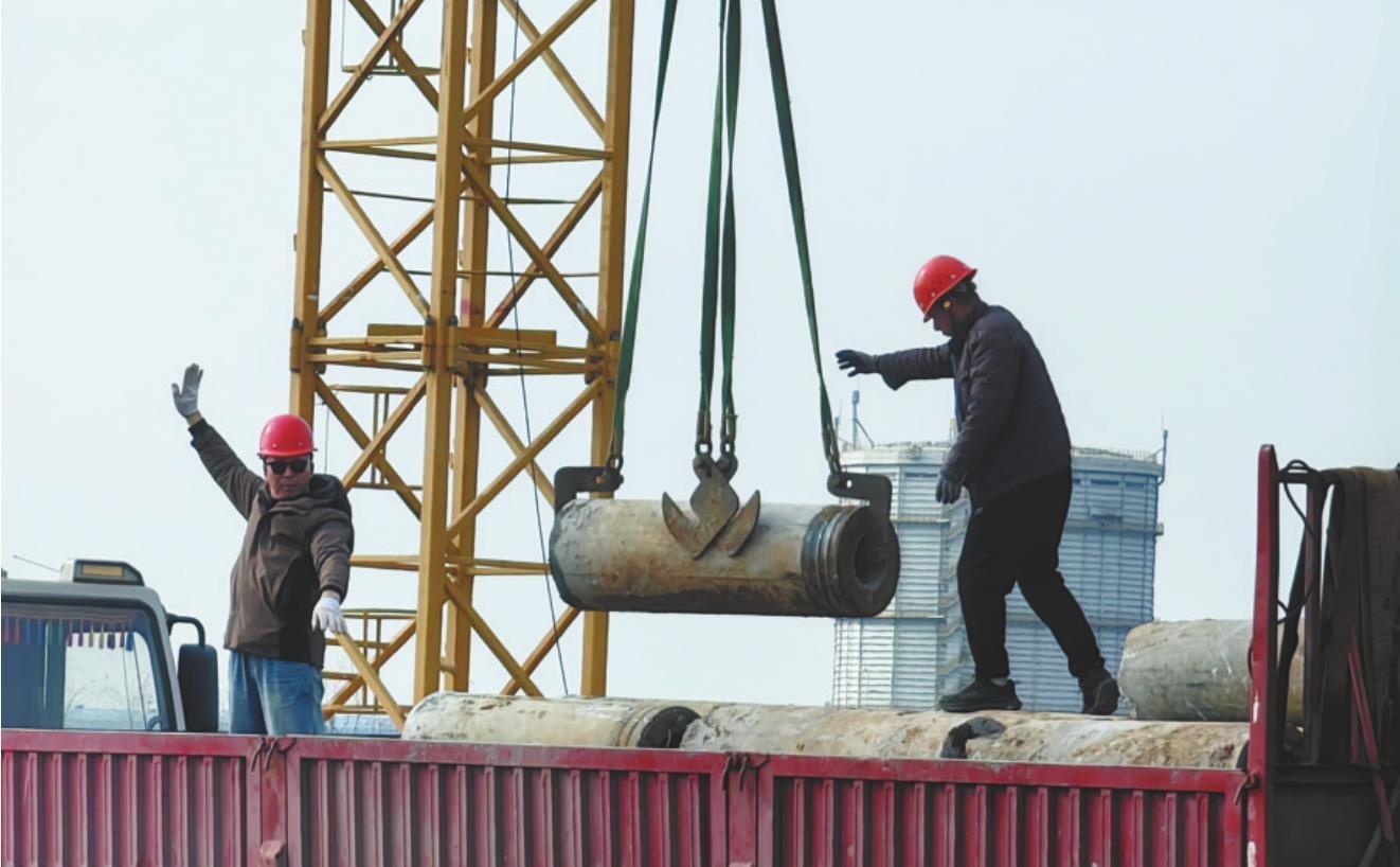 “工地现有工人将近200人,这几天两班倒,晚上干到十一二点。”近200名施工人员分散作业,现场各项建设有序推进,4315根管桩施工已全部完工,5台塔吊就位待命,1500吨钢筋、50余台施工机械悉数进场。