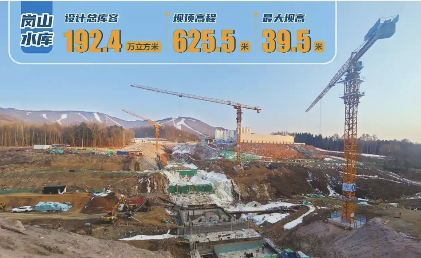 岗山水库坐落于富尔江支流响水河上,设计总库容192.4万立方米。水库不仅能支持当地调蓄洪水、农业灌溉,还承担着“十五冬”雪上项目的用水保障。