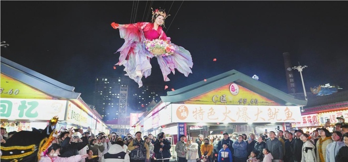 夜市内各类摊位依次排开,烧烤、小吃、甜品等百余种特色美食香气四溢。同时,夜市还增设了精彩的节目表演,让市民和游客沉浸式感受夜间消费的乐趣。