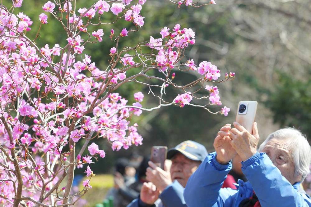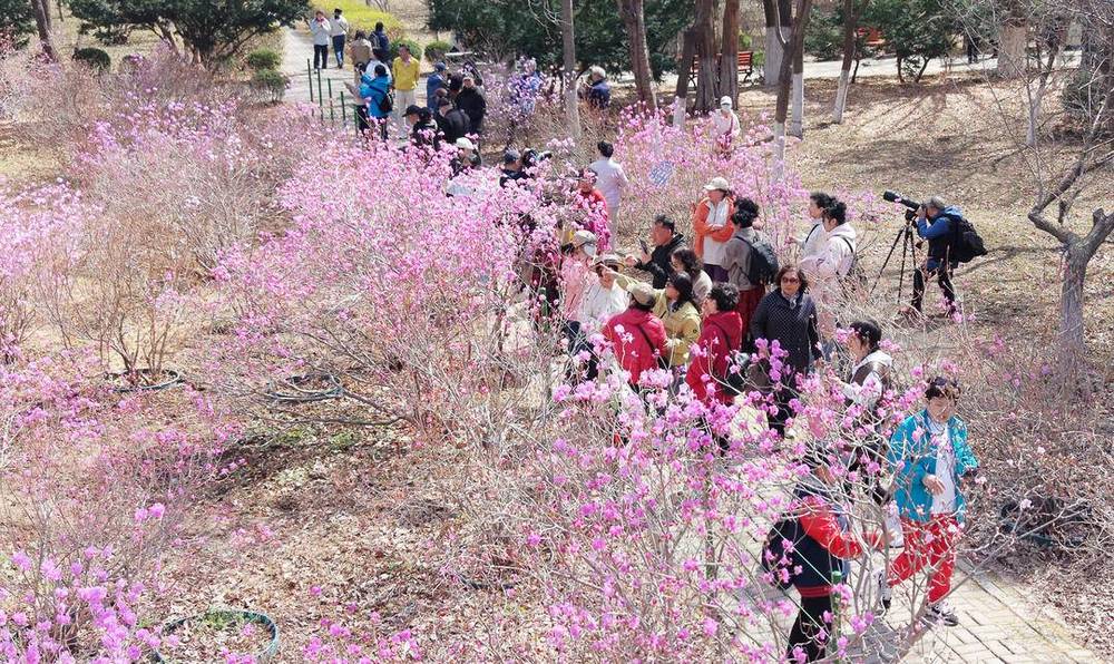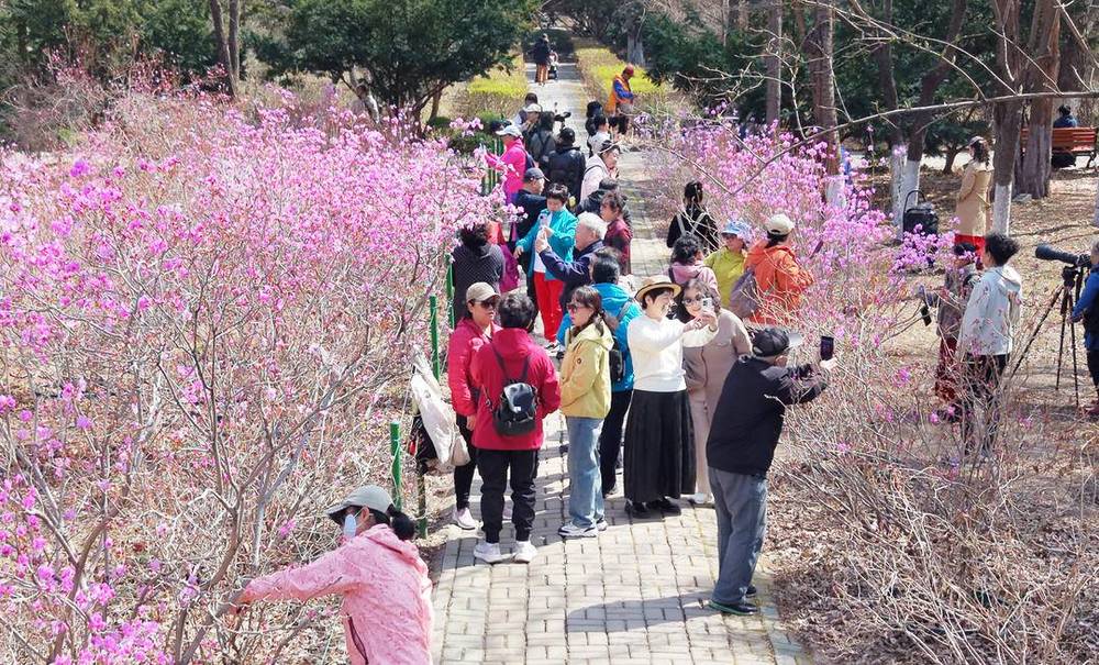 4月8日,春风拂面,沈阳市园林植物标本公园内,杜鹃花开得热烈烂漫。嫣红的花团缀满枝头,层层叠叠,在暖阳下格外明艳。漫步花间,清风携着淡淡花香,满眼皆是温柔春意。游人驻足赏花、轻按快门,用镜头定格繁花与春光。(辽宁日报记者 白琳)