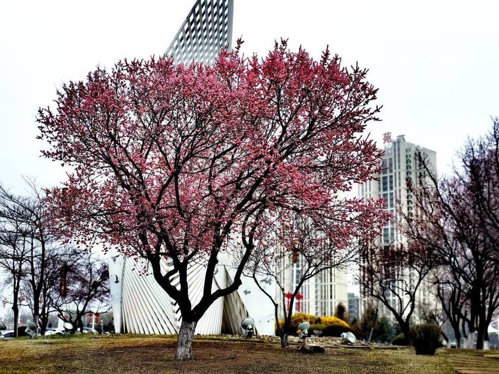 春雨洗去尘埃,朵朵山桃花饱满鲜亮。粉白的花儿缀满枝头,有的含苞待放,粉嫩可爱;有的完全盛开,吐露芬芳,在枝头上攒成一团团花簇。微风一吹,花枝轻轻晃动,带着雨后的清甜香气,和河边的碧水、路边的高楼相映,把春日里的城市衬得格外灵动好看。