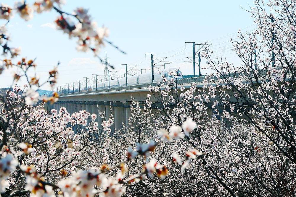 目前,漫山杏花正处于最佳观赏期,吸引了不少市民和摄影爱好者前往打卡,感受春日浪漫,也让古城朝阳在杏花的映衬下,更具生机与魅力。高铁穿行花海的画面,不仅生动展现了朝阳春日的生态之美,更将激活当地文旅发展活力,为文旅产业注入新动能。(辽宁日报记者 尹浩 摄影 单国军 特约记者 白铁军)