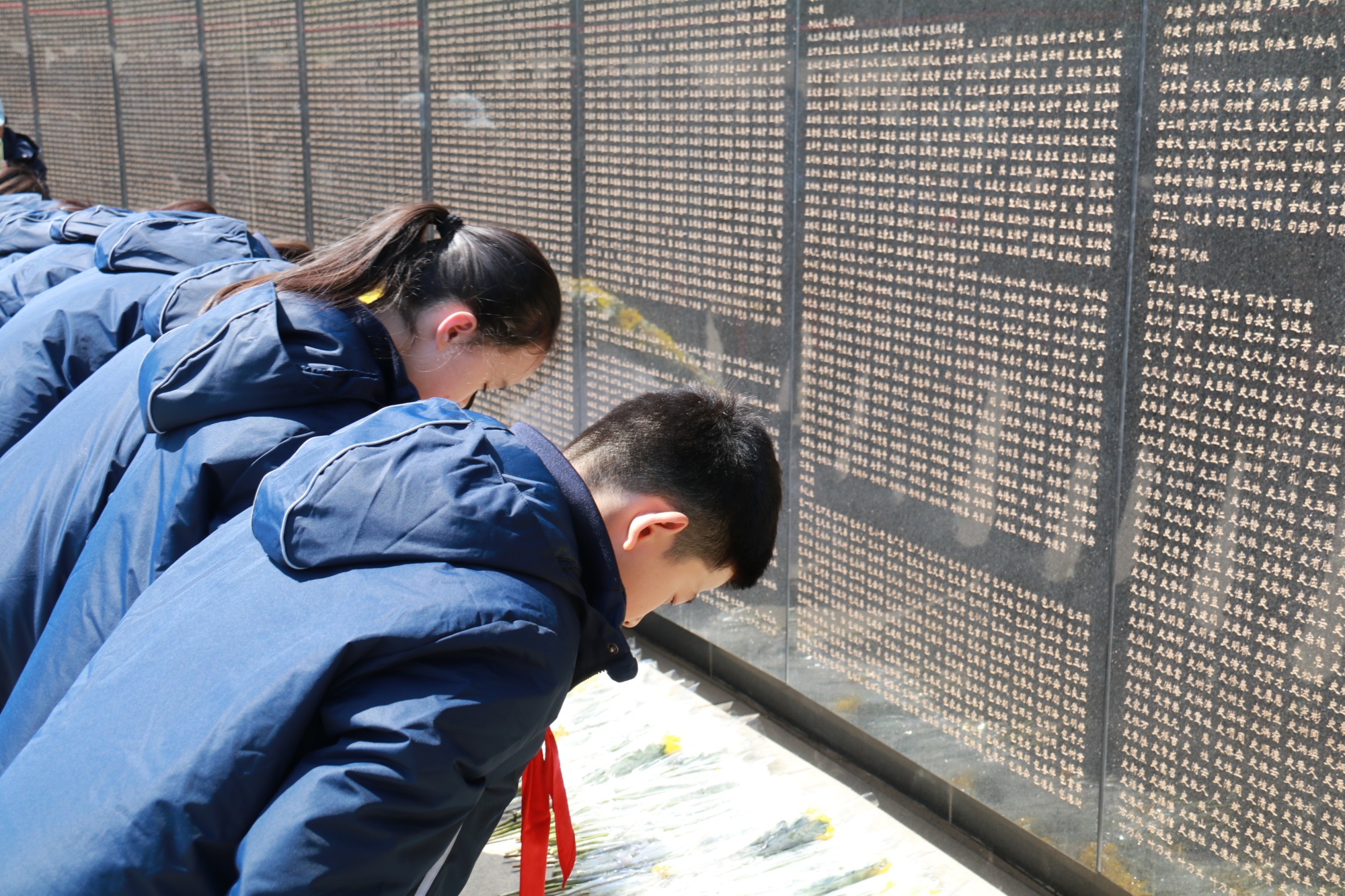 同学们向烈士献花并鞠躬(央广网记者 李子平 摄)