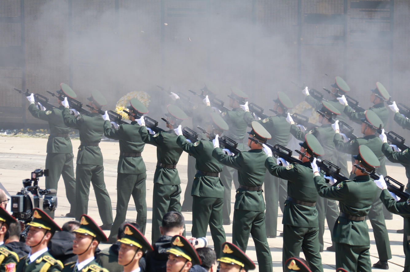 礼兵鸣枪,向志愿军烈士致以崇高敬意(央广网记者 李子平 摄)