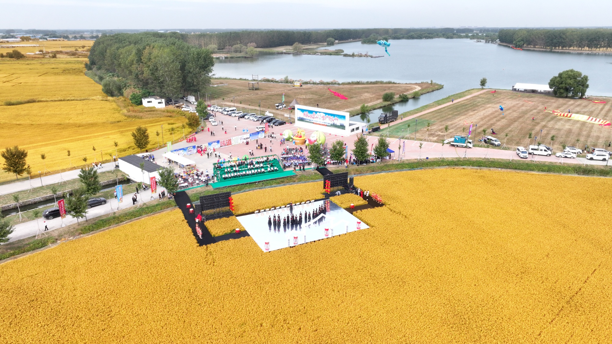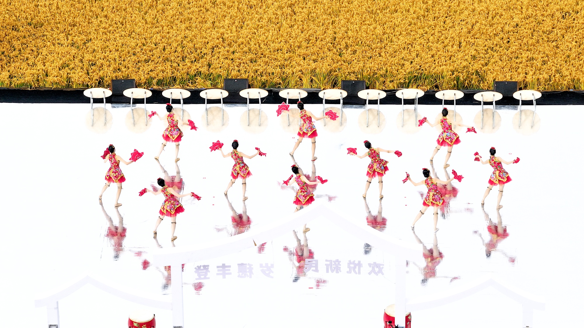 此次活动以一场融合自然之美、农业之美、文化之美的沉浸式稻田实景大秀拉开帷幕。芭蕾舞者在稻穗间翩翩起舞,模特身着创意稻谷服饰行走田埂,农耕文明与现代农业交相辉映。激情鼓手敲响丰收的鼓点,红衣舞者跳出热情节拍,展现新时代农民的精神风貌。