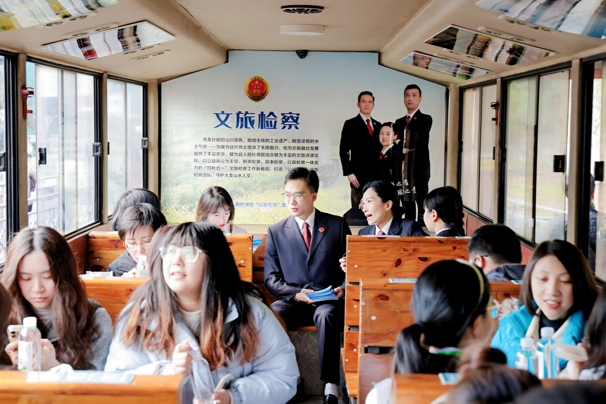 早在2018年,犍为县人民法院的干警们,就第一次带着法治的初心踏上了这列小火车,把生硬冰冷的法条,拆解成邻里林地纠纷、旅游权益维护的鲜活故事,讲给车厢里的每一位乘客听。近年来,犍为检察院也推出“文旅检察”法治专列,普及工业遗产保护法律知识,检察官们不用扩音器,不堆砌晦涩的专业术语,就像同车的旅伴一般,顺着窗外掠过的古桫椤林、连绵青山与潺潺流水,把《中华人民共和国环境保护法》《中华人民共和国民法典》《中华人民共和国旅游法》里的相关规定,揉进一个个有血有肉的真实案例里,娓娓道来。