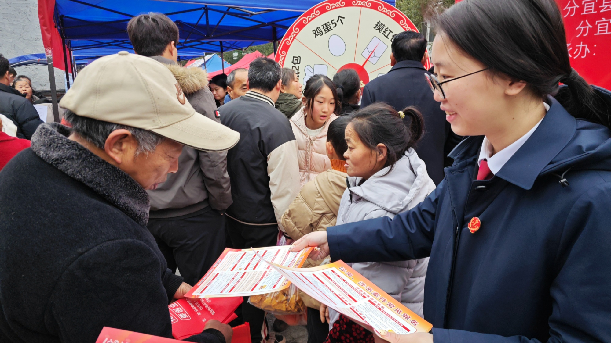 反邪教和扫黑除恶的展板前也围了不少人。真实案例配着图片,让人警醒。镇上的李大爷指着展板说:“这些东西就得让大家看清楚,远离是非,过安稳年。”