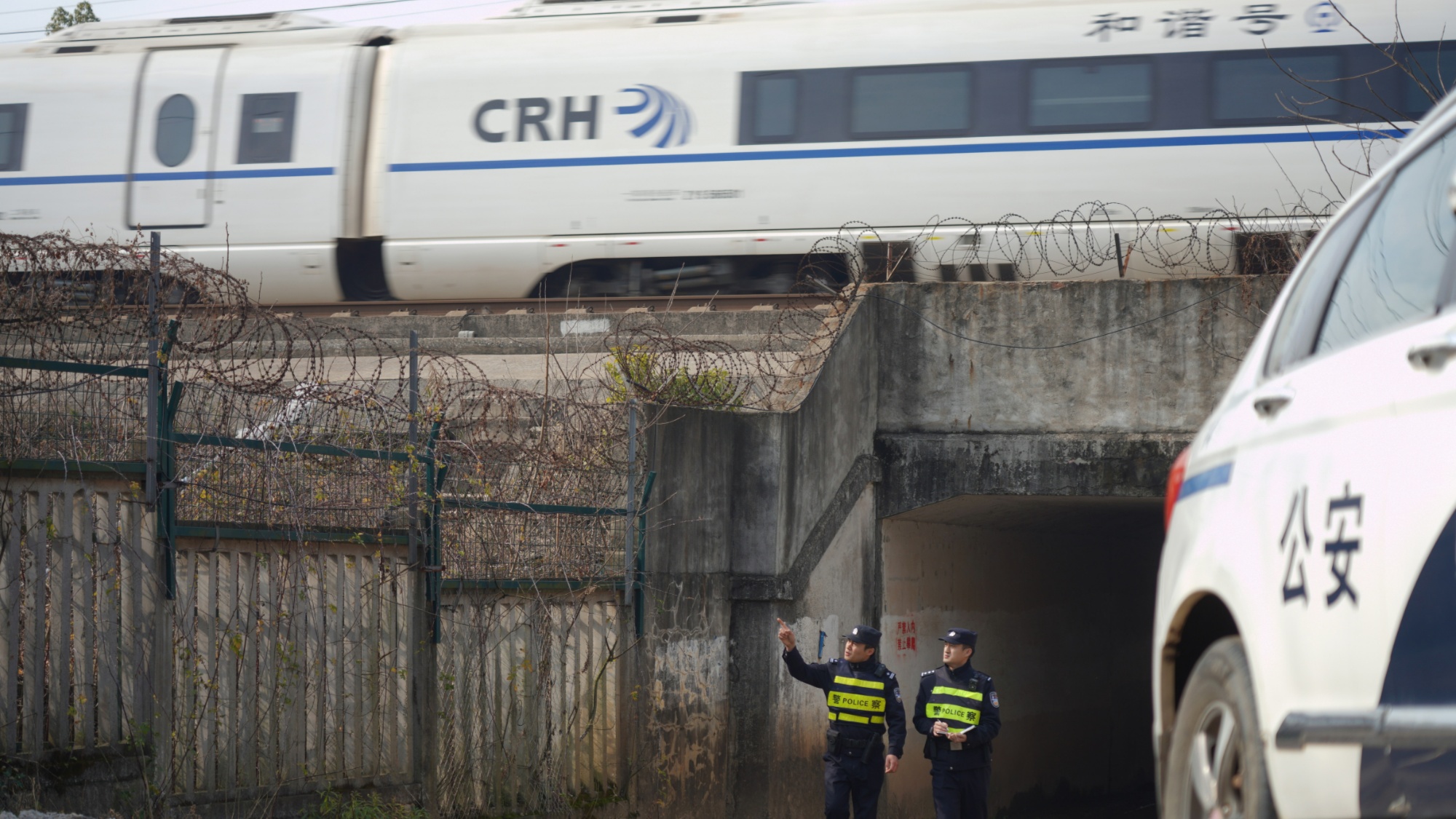 民警开展线路隐患排查,确保春运高铁线路安全。(李鹏翔摄 央广网发)