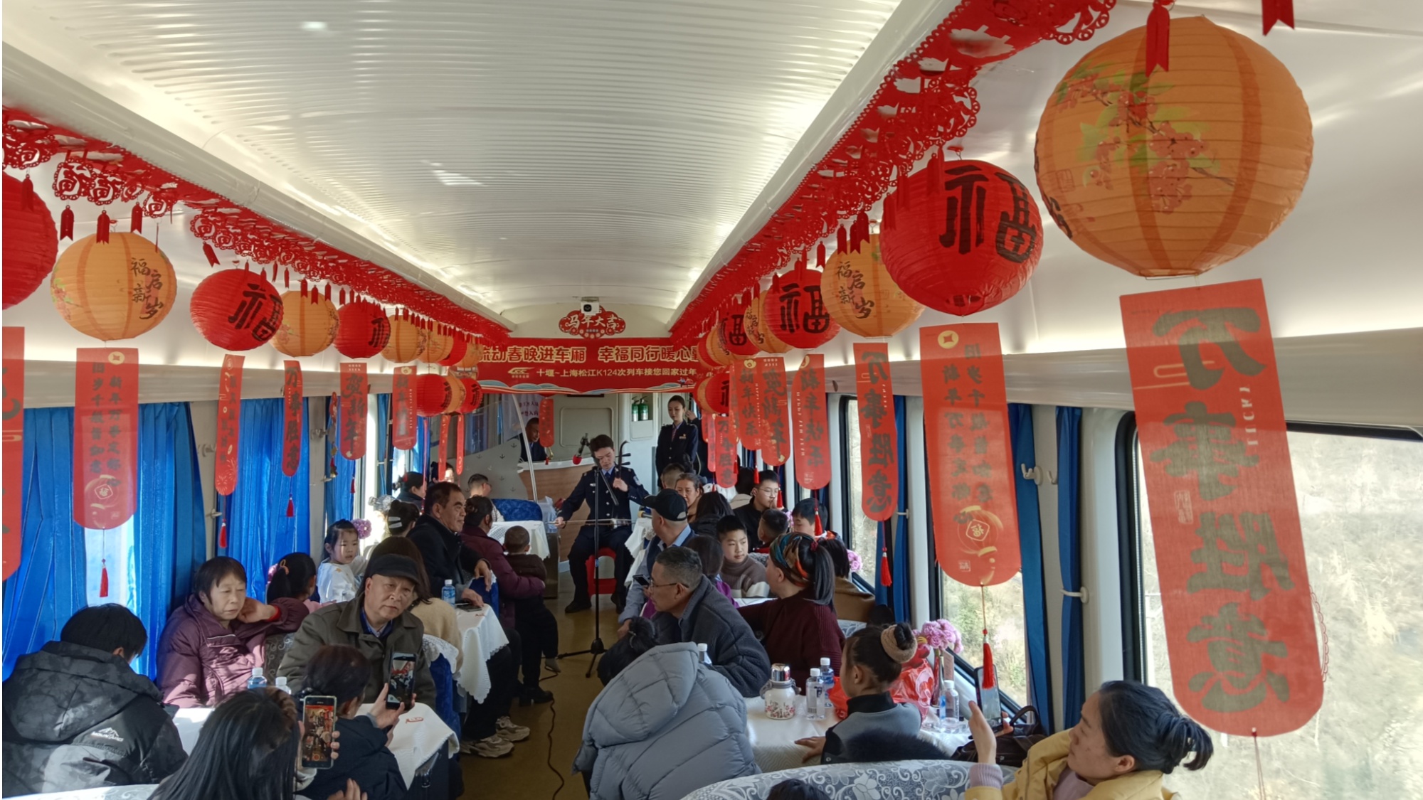 次日,2月11日,南方小年。从十堰始发的K124次绿皮车缓缓驶出站台,车厢内歌声飞扬,“流动的春晚”暖意融融。