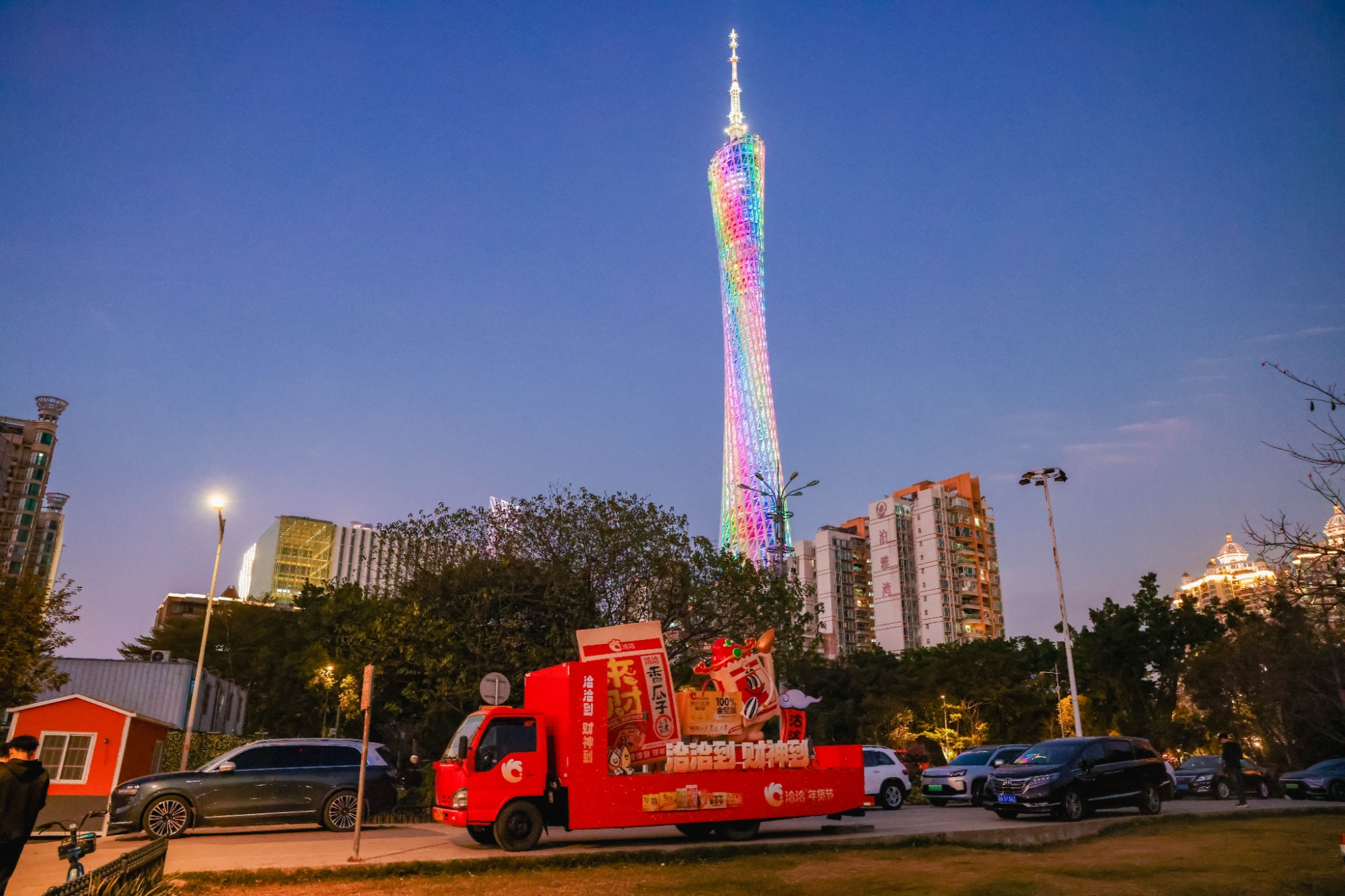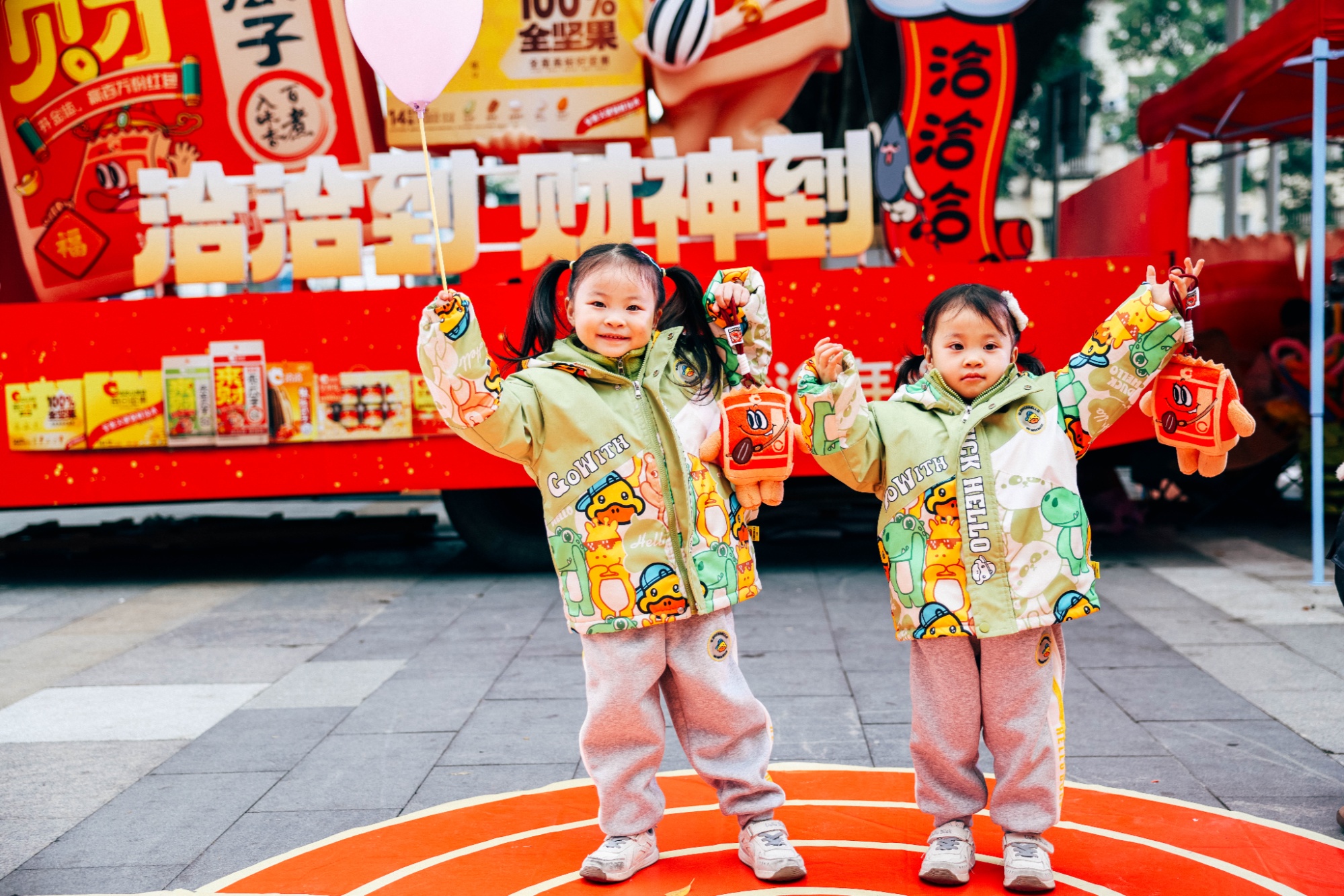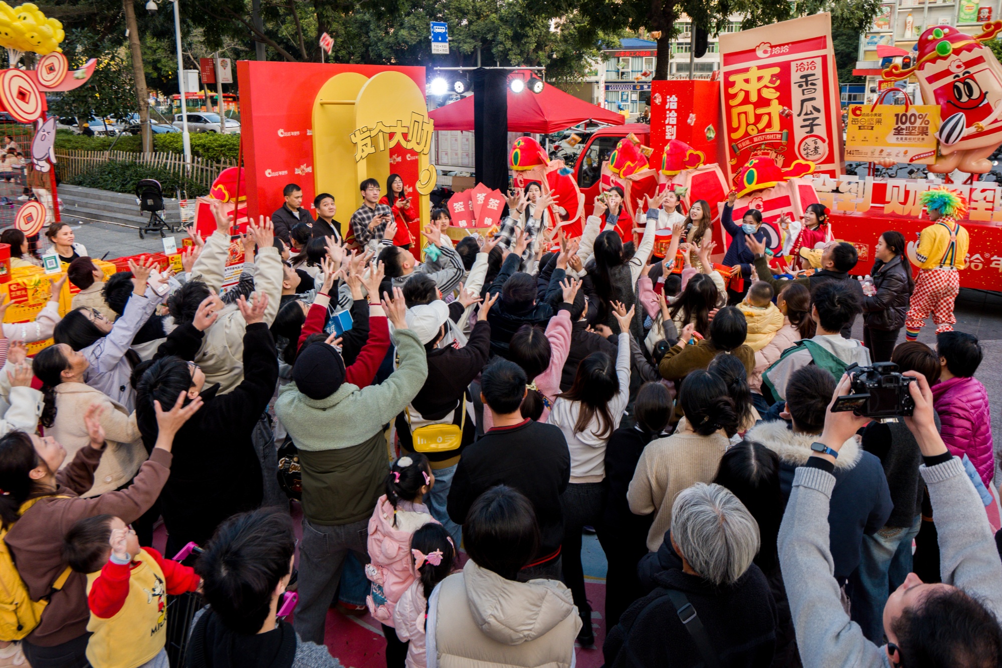 巡游现场,一辆满载喜庆的大篷车化身流动的“年味符号”,车内陈列着巨型洽洽红袋瓜子与 100% 全坚果礼盒。萌趣的“洽宝财神”手持象征财运的金瓜子沿路派发上万份财气好礼,将“洽洽到 财神到” 的新春祝福送到街头巷尾,成为今年春节线下最具人气的年味风景之一。