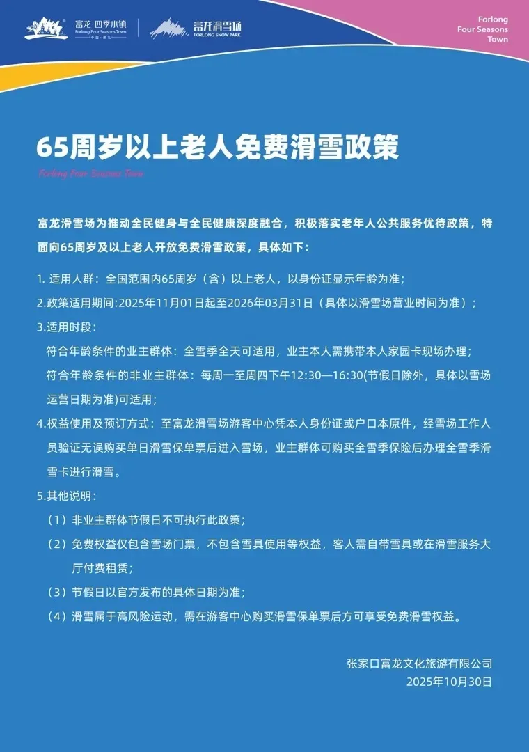 记者查询发现,张家口其他滑雪场也有推出针对老年群体的优惠政策,包括滑雪半价或免费。