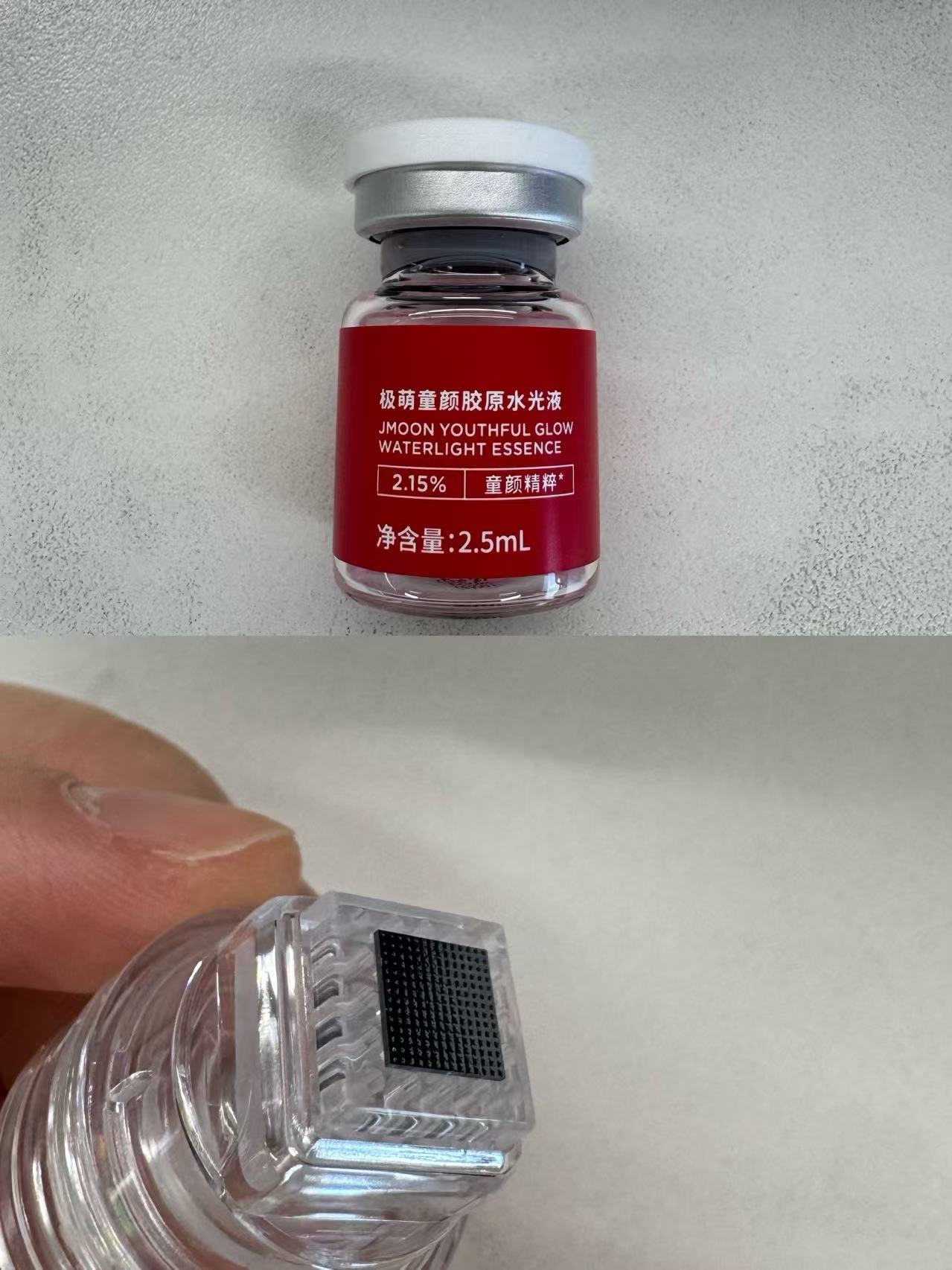 据客服介绍,套组内的硅晶盖采用纳米微晶技术,只需垂直按压在瓶口,即可在面部完成操作。但记者发现,无论是直播间演示还是产品详情页,均未明确标注操作的按压力度规范,更无针对硅晶头消毒的强制提示。