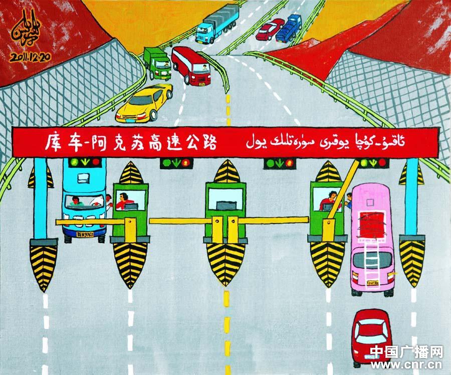新疆农民画系列之二:家乡巨变(中广网记者 张雷 摄)
