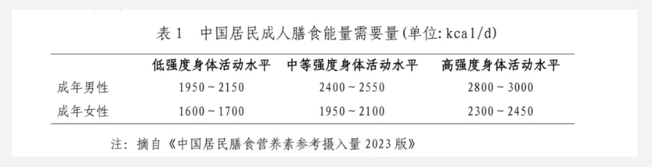 控制总能量摄入和保持合理膳食是体重管理的关键。控制总能量摄入,可基于不同人群每天的能量需要量(如下表),推荐每日能量摄入平均降低30%~50%或降低500~1000kcal,或推荐每日能量摄入男性1200~1500kcal、女性1000~1200kcal的限能量平衡膳食。
