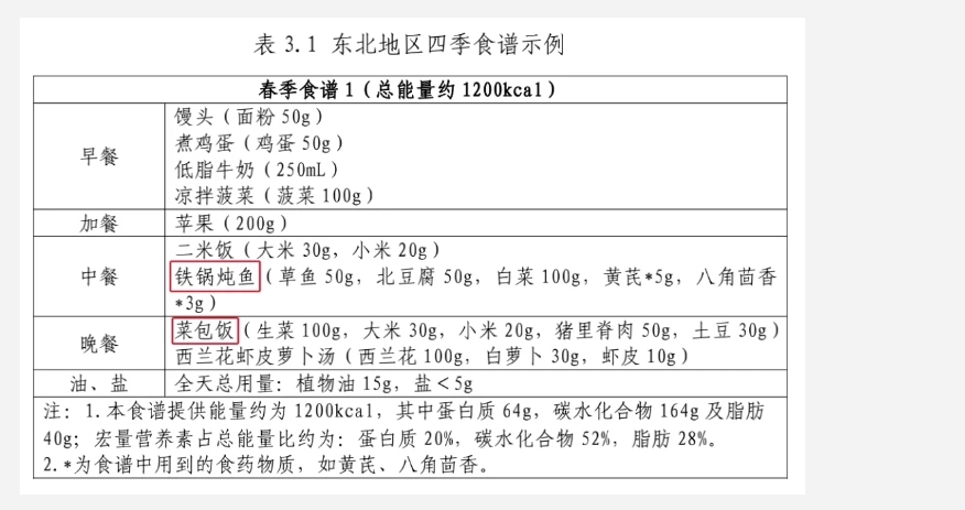 例如,东北地区的春季食谱有“铁锅炖鱼”“菜包饭”,西北地区的食谱里有“臊子面”“油泼面”。