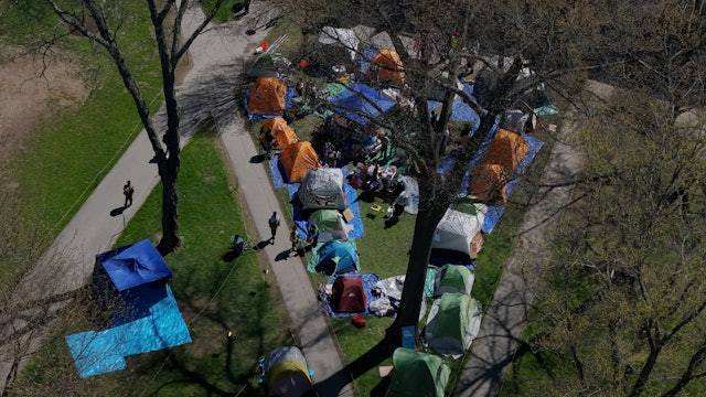 2024年4月25日,哈佛大学的学生在校内扎营,举行支持巴勒斯坦的示威