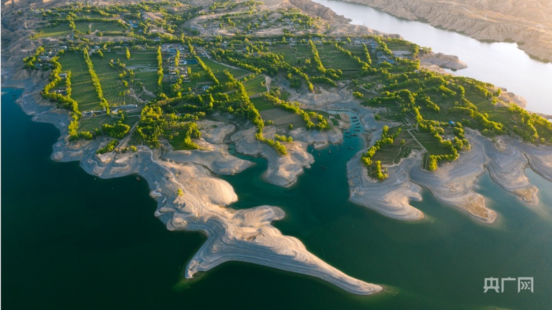 碧绿的黄河如同一颗“翡翠”镶嵌在峡谷中(央广网记者 贾海元 摄)