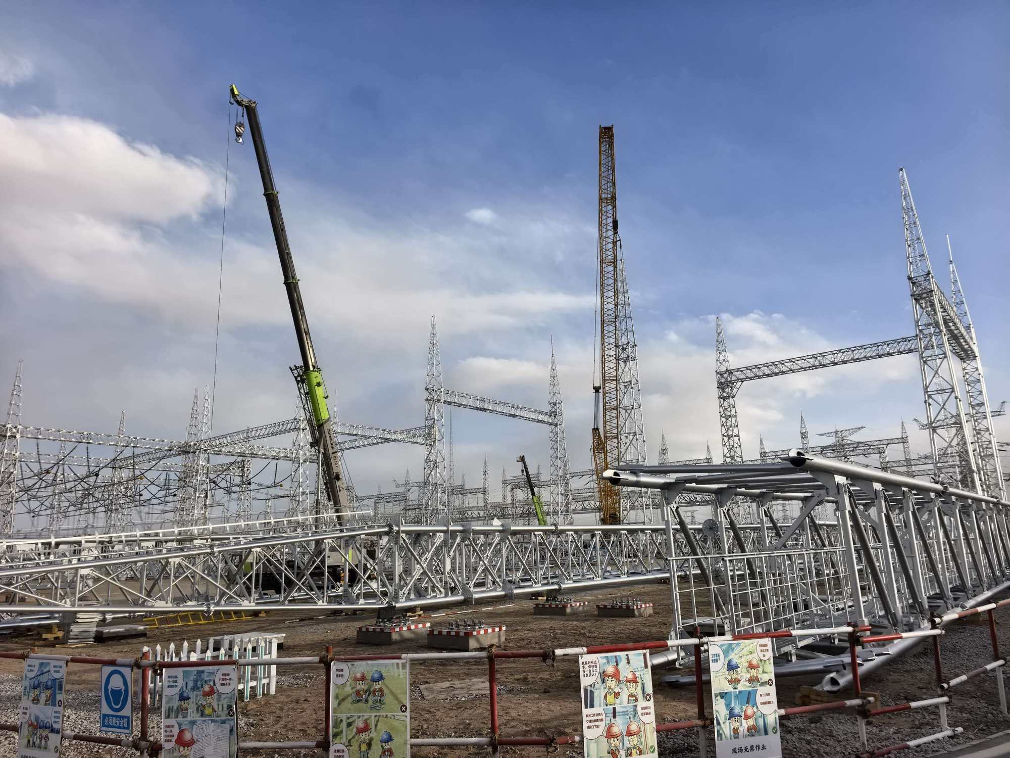 昆仑山750千伏变电站构架吊装安全高效完成