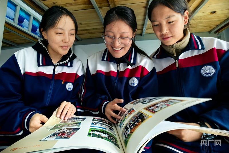 巴桑卓玛(中)与同学们分享去上海交流学习的经历(央广网记者 张海东 摄)