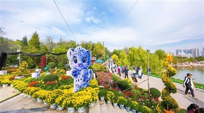 进入园区后,各动物展区前都围满了兴致勃勃的游客。在最受欢迎的雪豹馆周围,游客们更是里三层外三层地驻足观赏。透过观景玻璃,雪豹“凌小芒”正悠闲地趴在墙上晒太阳,蓬松的尾巴时不时轻轻摆动,引得相机快门声此起彼伏。“太可爱了,比视频里看到的还要萌。”一位年轻女孩举着手机,不停地按下快门。