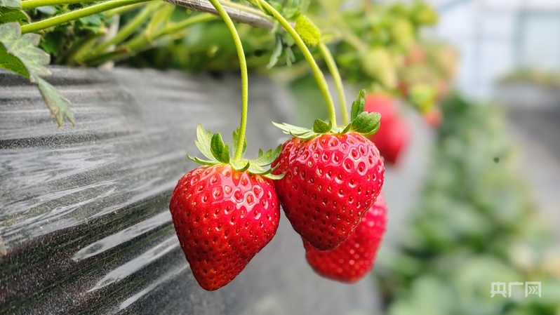 鲜红的草莓香甜诱人(央广网发 西宁市湟中区委宣传部供图)