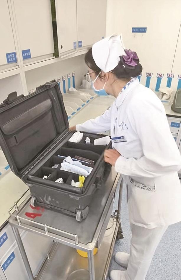 上门护理前,青海省人民医院护理人员准备医药用品