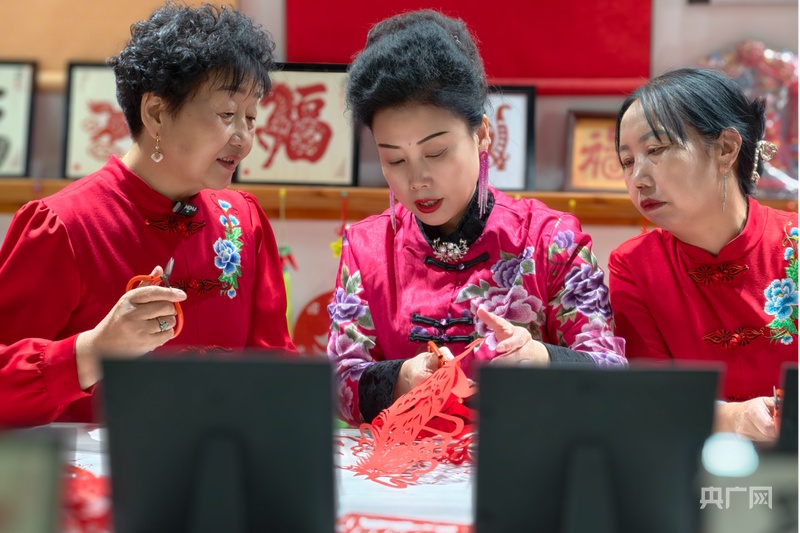 在单永武的带领下许多妇女走上学习剪纸技艺之路(央广网记者 张海东 摄)