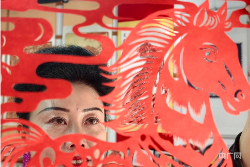 单永武工作室创作的马年剪纸作品(央广网记者 张海东 摄)