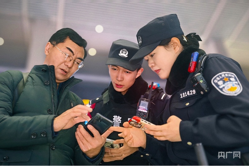 李基玉和队友为春运保驾护航(央广网记者 张海东 摄)