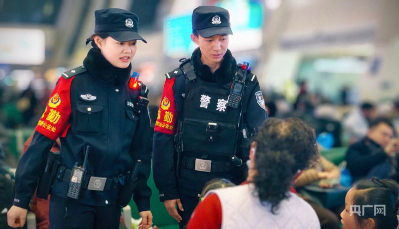 西宁站派出所民警桑春云、周得灵为旅客服务(央广网记者 张海东 摄)