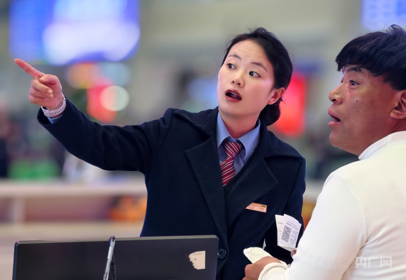 央广网西宁2月17日消息(记者 张海东)“您乘坐的Z274次列车在A5站台,现在离开车时间还早呢,您先在候车区休息,检票的时候我们会提醒您。”春运中,夜晚的西宁站内一派忙碌、人流不息,服务台的许琼耐心地为一位乘客提供问询服务。