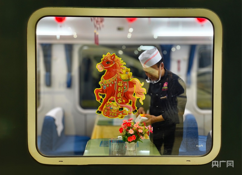 为迎接春节列车上营造出浓浓的年味(央广网记者 张海东 摄)