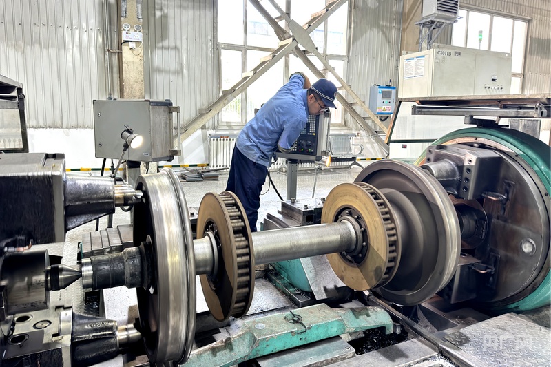 央广网西宁2月24日消息(记者汪晓青)春运正酣,年味正浓。中国铁路青藏集团有限公司西宁车辆段轮轴检修间内灯火通明、机器运转,一派繁忙有序的景象。为全力保障春运列车安全畅通,工长王凯带领班组职工坚守岗位,对春运备用轮轴开展全面细致的“体检”,用责任与匠心筑牢春运安全第一道防线。