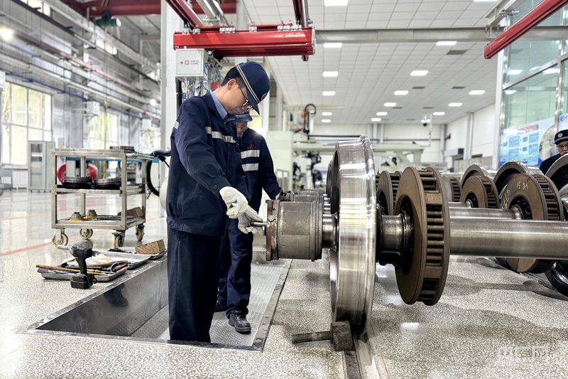 总装线进入最后的收尾工序,副工长白发旺带领职工们分工协作、默契配合,全力推进轮轴组装工作。轴承压装、均匀灌油、轴箱安装、间隙调整、螺栓紧固……每一道工序都严格遵循操作规程。当扭矩扳手发出“咔哒”的提示音时,便意味着每一颗螺栓都达到了规定扭矩,这是轮轴“合格上岗”的信号。“这些轮轴经过全方位检修,明天就能装车投入春运运输,守护万千旅客平安返乡。”白发旺说。