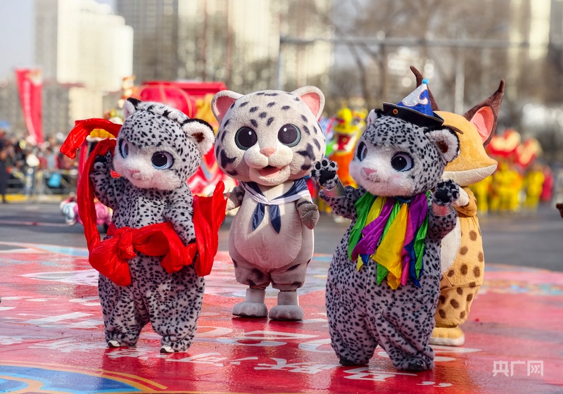 雪豹元素融入到社火表演中(央广网记者 张海东 摄)