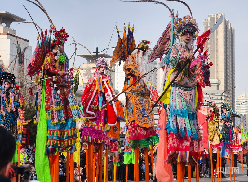 3公里巡游线路上,9大主题板块、40余支队伍、近3000名演员轮番亮相,非遗高跷、太平鼓、钱棍舞、青海道情等原汁原味上演。湟中区200余名高跷演员压轴登场,凌空起舞、技艺精湛,龙狮翻腾、气势如虹,引得市民游客掌声不断。花车融合雪豹IP、马年元素与昆仑神话,传统非遗与现代西宁交相辉映,尽显河湟文化独特魅力。