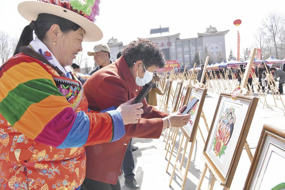 游客拍下喜爱的青绣作品(记者 牛玉娇 韩丽萍 摄)