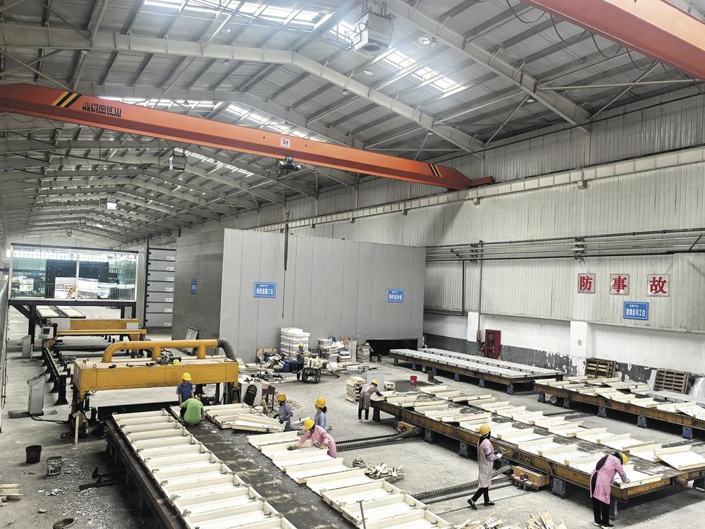 青海宝恒绿色建筑产业股份有限公司PC生产线安放市政构件模具。张沛摄