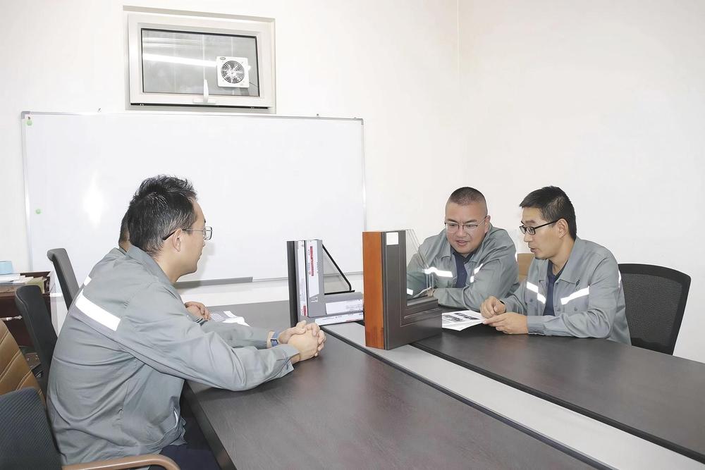 研发人员研讨智能门窗的产品保温性能。张沛摄